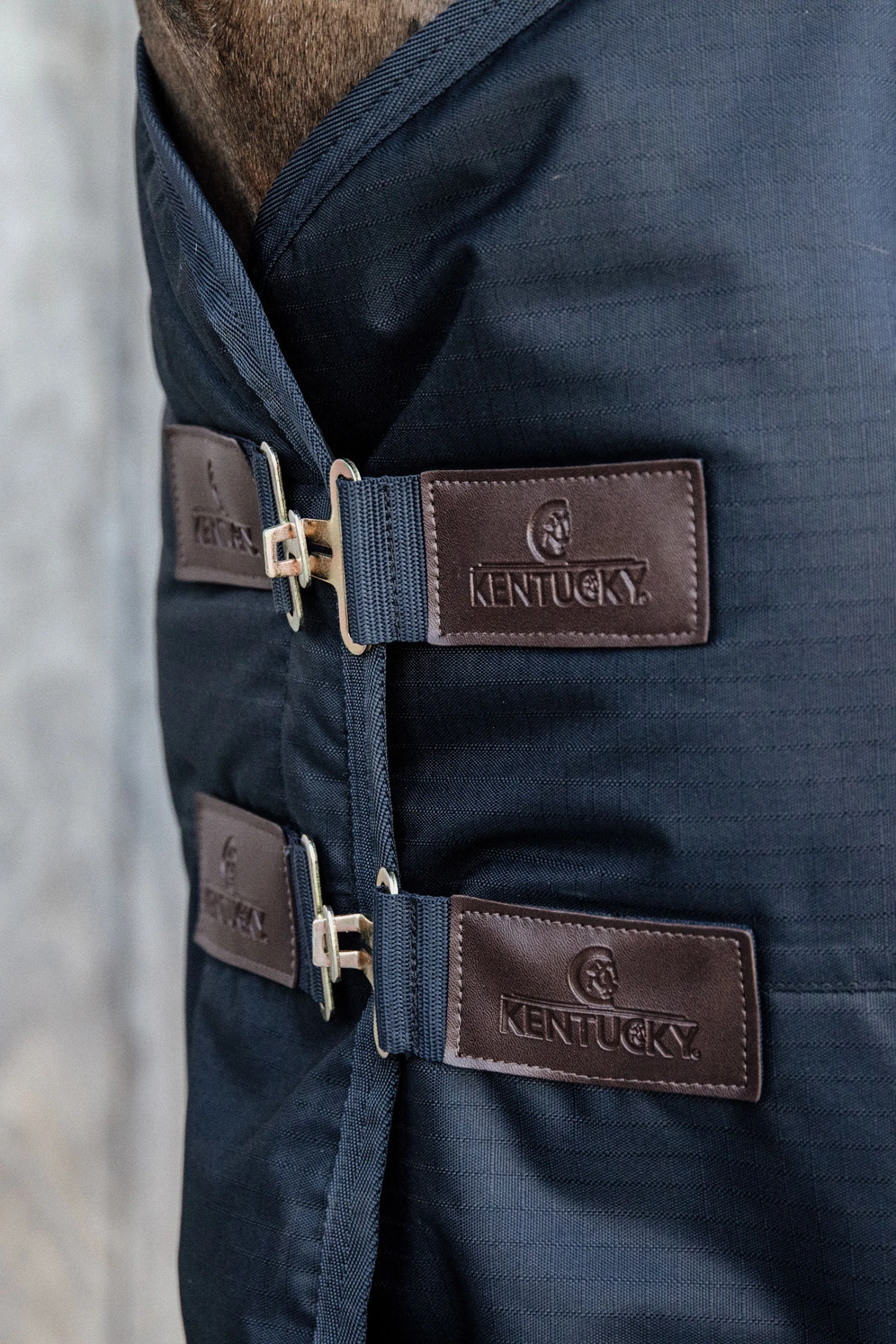 Der Decke Outdoor ist die perfekte Decke, um Ihr Pferd auf die Koppel zu stellen. Es gibt 4 verschiedene Füllungen – 0G, 50G, 150G oder 300G – damit Sie ihn an die Bedürfnisse Ihres Pferdes anpassen können. Die Außenhülle besteht aus einem 600D-Ripstop-Gewebe, das gegen verschiedenste Witterungsbedingungen beständig ist. Die Decke besteht aus Nylon mit einem 210T PES-Futter, das sich anfühlt wie ein Schlafsack. Sie verfügt über zwei klassische Vorderverschlüsse kombiniert mit einem starken Klettverschluss, zwei Gurten und einer abnehmbaren Schweifkordel. Die Schweifklappe bietet zusätzlichen Schutz und Wärme. Der Halsteil Outdoor kann separat gekauft und mit Hilfe von vier starken Klettverschlüssen an der Decke befestigt und mit zwei weiteren belastbaren Klettverschlüssen geschlossen werden. Der Halsteil Outdoor hat eine 0G- oder 150G-Füllung. Die Lederaufnäher geben dem Decke Outdoor den beliebten Kentucky-Look.